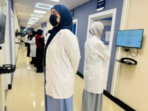 وتضمّن الامتحان محطات متعددة شملت ردهـات مختلفة منها الباطنية، وطب الأطفال، والنسائية والجراحية، إضافة إلى ردهات أخرى، حيث جرى تقييم قدرة الطالبات على التعامل مع الحالات المرضية المختلفة، واختيار العلاج الدوائي المناسب، وفهم دور الصيدلاني السريري ضمن الفريق الطبي.