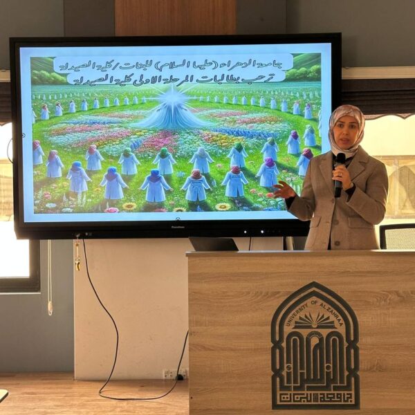 أقامت كلية الصيدلة في جامعة الزهراء للبنات جلسة تعريفية وتثقيفية لطالبات المرحلة الأولى، تزامنًا مع انطلاق العام الجامعي 2025–2026، بهدف تعريف الطالبات بالمسار الأكاديمي ومتطلبات الدراسة الجامعية في تخصص الصيدلة.