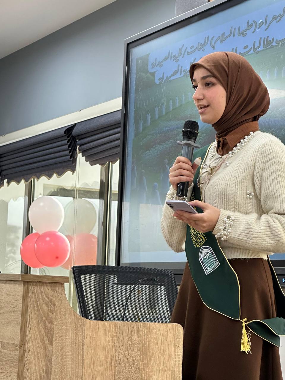 وأكدت السيدة عميدة الكلية، أ. د. نور هاتف الدباغ، في كلمتها خلال الجلسة، أن الطالبة تمثل جزءًا أساسيًا من منظومة البناء المستقبلي للبلد، مشددةً على أهمية الاجتهاد والالتزام العلمي من أجل تقديم خدمات نوعية في مجال الصيدلة وتسهم في خدمة المجتمع وتلبية احتياجاته الصحية.