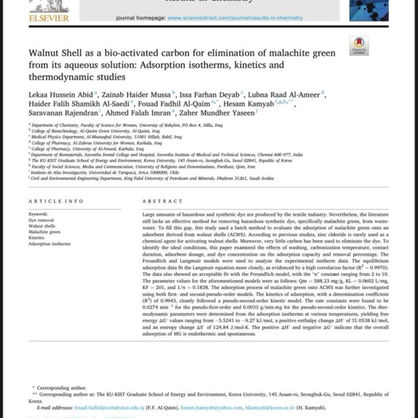 باحثة من جامعة الزهراء للبنات في كلية الصيدلة تنشر بحثًا حول إزالة الصبغات الخطرة باستخدام قشور الجوزUniversity Of Al-Zahraa24 مارس، 2025نشرت السيدة التدريسية م.م. لبنى رعد عبد الأمير من جامعة الزهراء للبنات بحثًا علميًا في مجلة Results ... اقرأ أكثر
