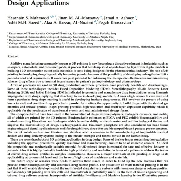 باحث من كلية الصيدلة بجامعة الزهراء للبنات ينشر دراسة حول الطباعة ثلاثية الأبعاد في تصميم الأدويةUniversity Of Al-Zahraa25 مارس، 2025نشر م.د. علاء عبد الرزاق محمد حسين، التدريسي في كلية الصيدلة بجامعة الزهراء للبنات، بحثًا علميًا في ... اقرأ أكثر