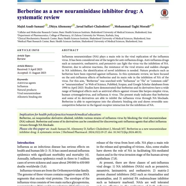 berberine as a new neuraminidase inhibitor drug: a systemic reviewAlzahraa2 يونيو، 2024تم نشر البحث الموسوم (berberine as a new neuraminidase inhibitor drug: a systemic review) من قبل التدريسي ... اقرأ أكثر