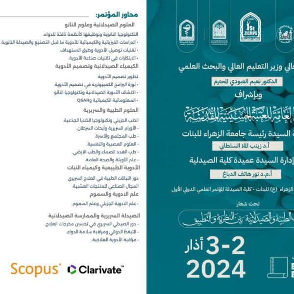الأعلان عن مؤتمر كلية الصيدلة الدولي الأول في جامعة الزهراء (عليها السلام)Alzahraa15 يناير، 2024مؤتمر كلية الصيدلة الدولي الأول يدعو السادة الباحثين إلى المشاركة وإرسال البحوث العلمية للروابط المنشورة أدناه. علمأً ... اقرأ أكثر