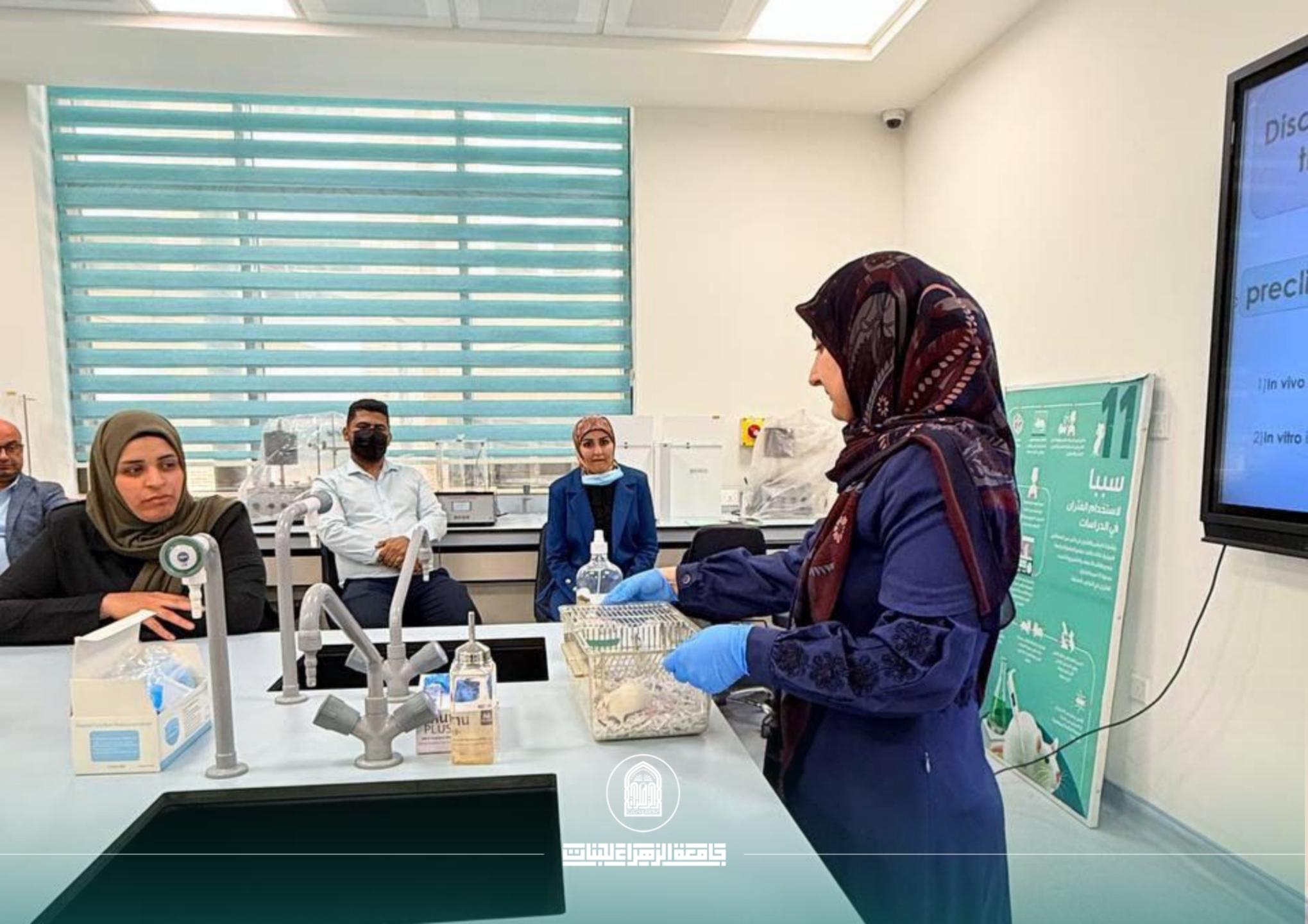 Under the auspices of the President of Al-Zahraa University for Women, Prof. Dr. Zainab Al-Mulla Al-Sultani, and the supervision of the Dean of the College of Pharmacy, Prof. Dr. Noor Al-Dabbagh, and in cooperation with the Centre for Continuous Education, the College of Pharmacy organized a scientific training course titled “Proper Methods for Handling Laboratory Animals.”