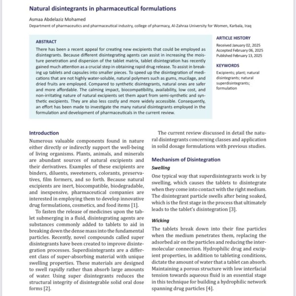 Faculty Member from Al-Zahraa University Faculty of Pharmacy Publishes Research in an International JournalUniversity Of Al-Zahraa9 March، 2025نشرت السيدة م. د. أسماء عبد العزيز محمد، التدريسية في كلية الصيدلة بجامعة الزهراء للبنات، بحثًا علميًا ... Read more