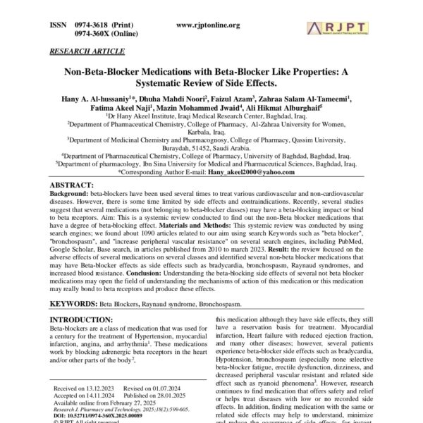 Faculty Member at Al-Zahraa University Publishes Research on Beta-Blocking Effects of Non-Beta Blocker DrugsUniversity Of Al-Zahraa11 March، 2025نشرت م.م ضحى مهدي البحراني، التدريسية في كلية الصيدلة بجامعة الزهراء للبنات، بحثًا علميًا في مجلة Research ... Read more